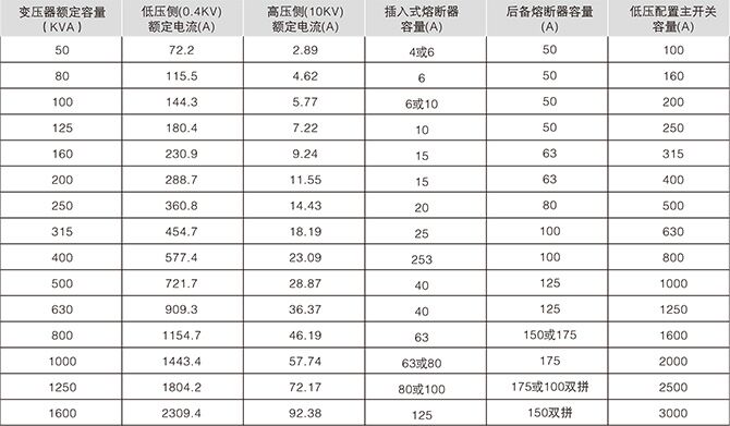 ◆美式箱變高壓保護用熔斷器配置情況一覽表(三相);