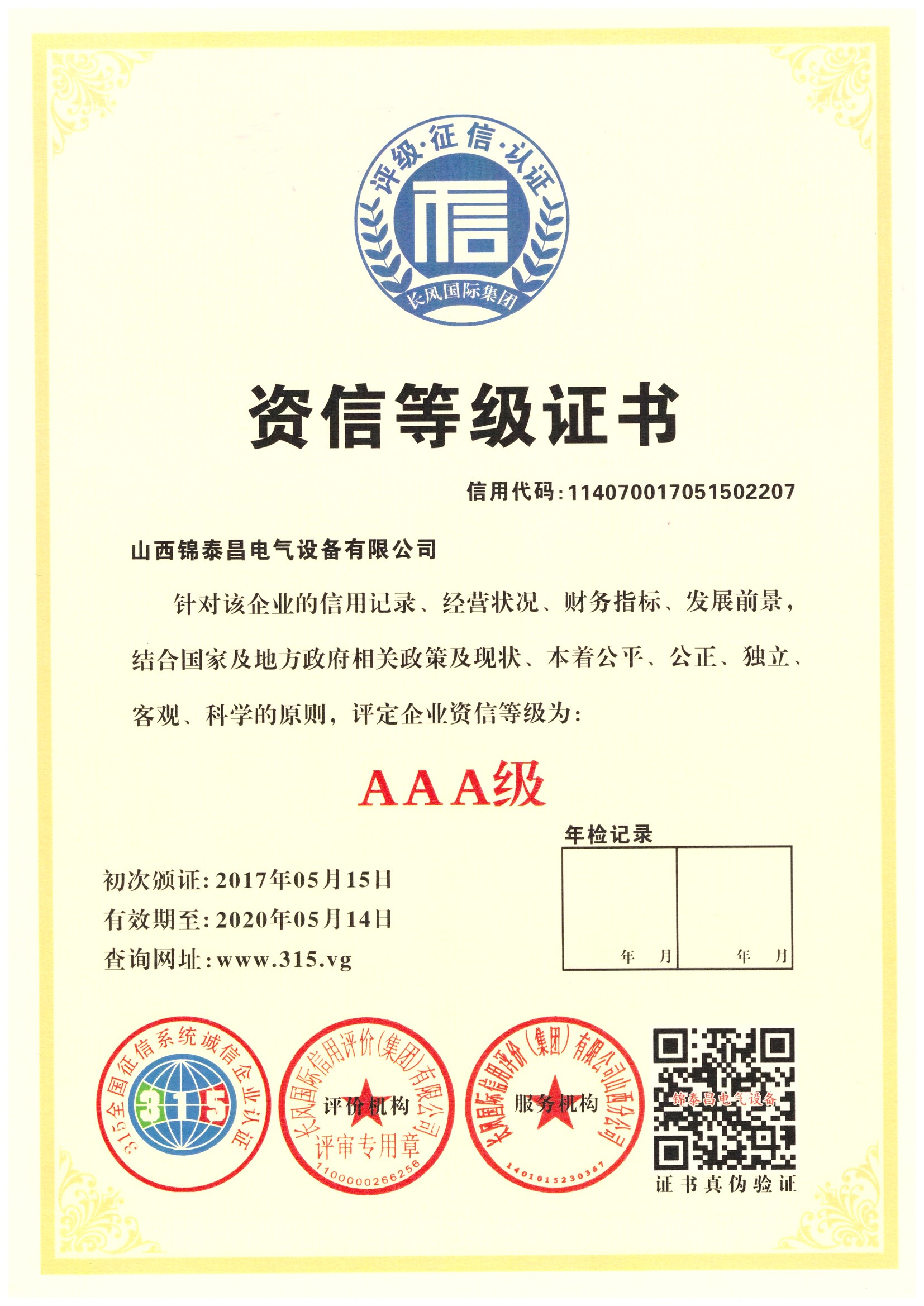 資信等級證書